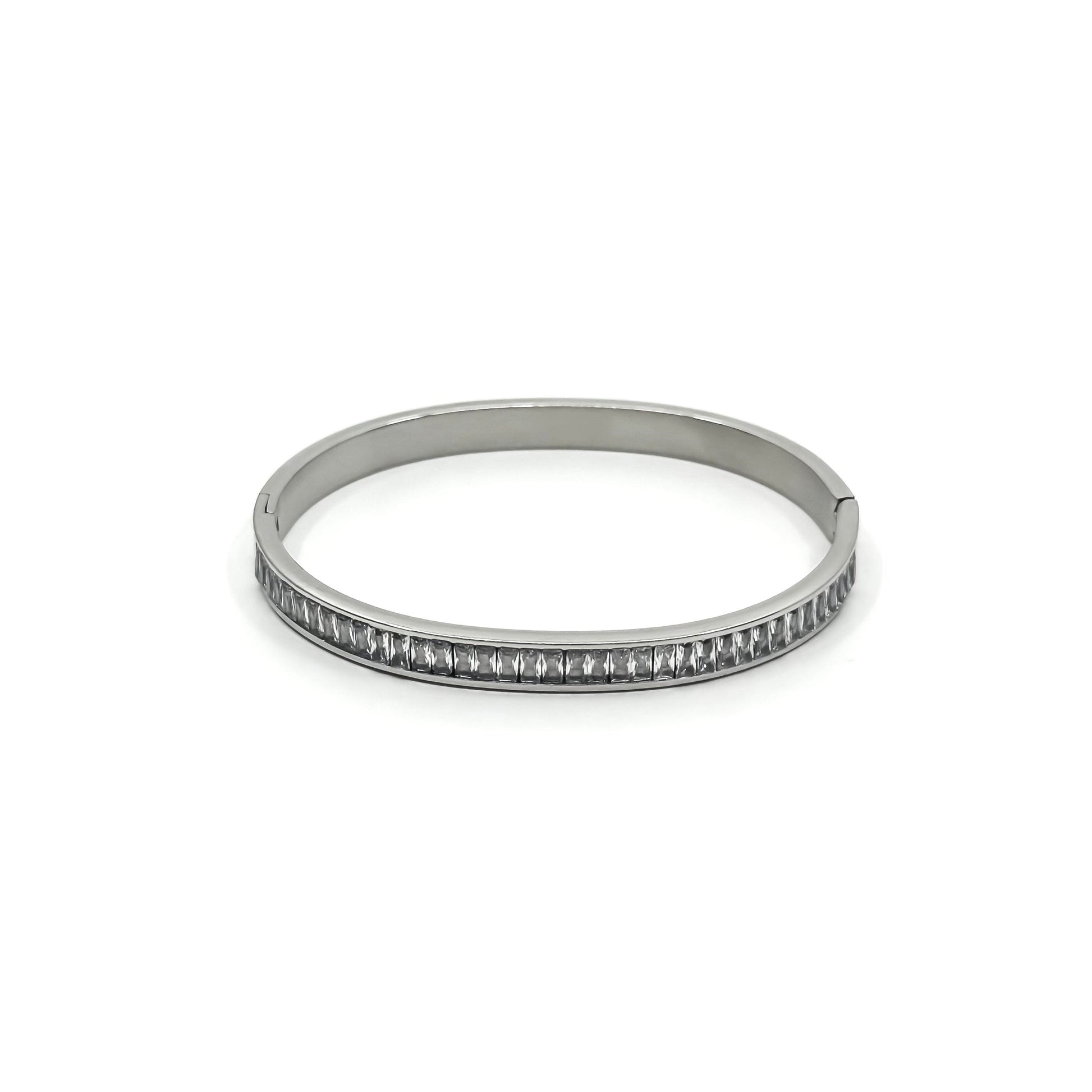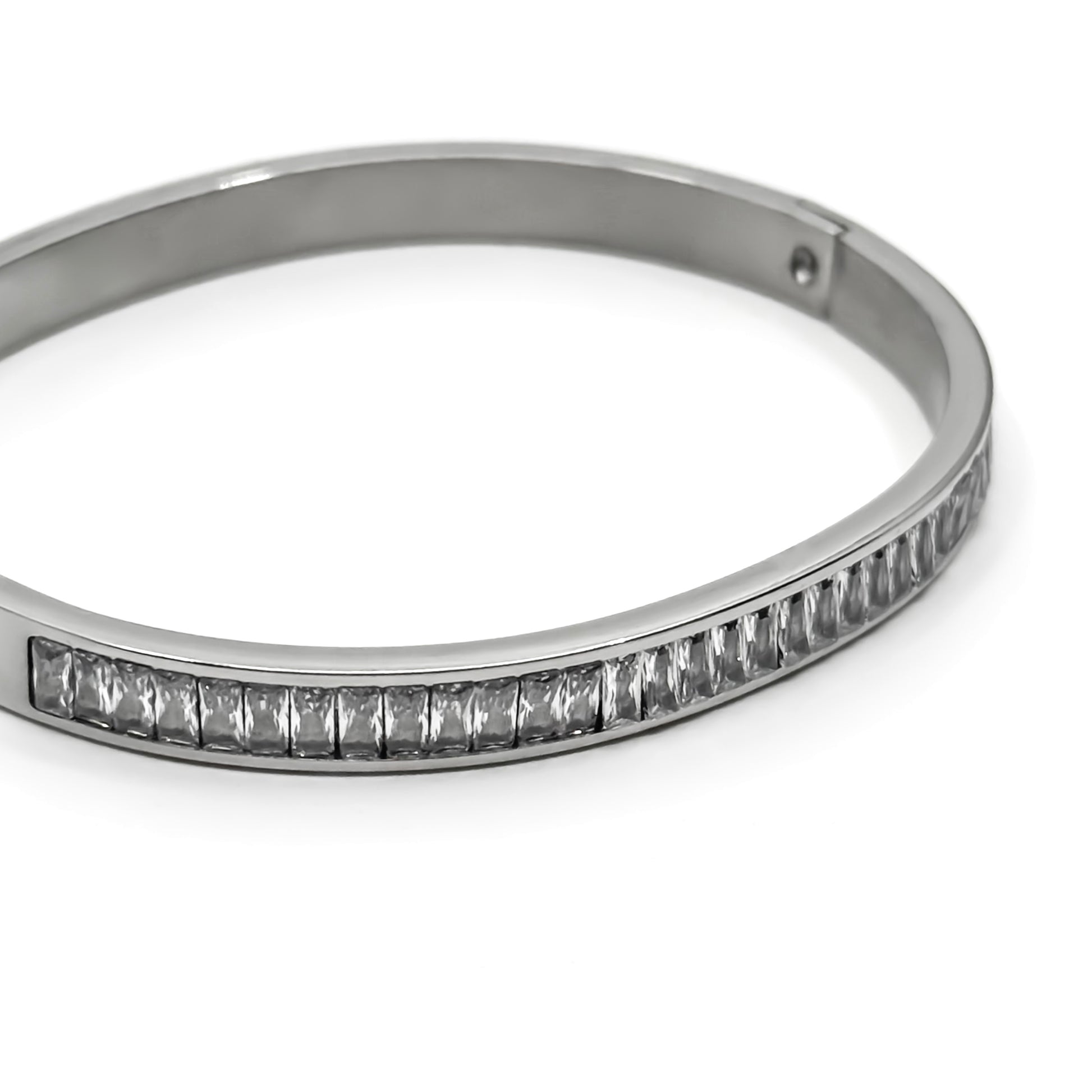 Stainless steel bracelet with zircon stones.